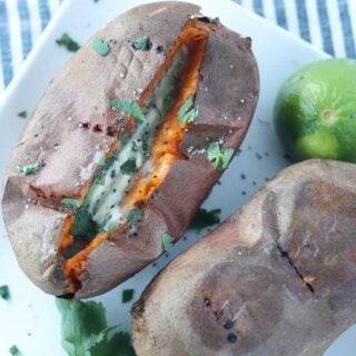 We topped our air fryer whole sweet potato with an optional cilantro lime butter that we included below!