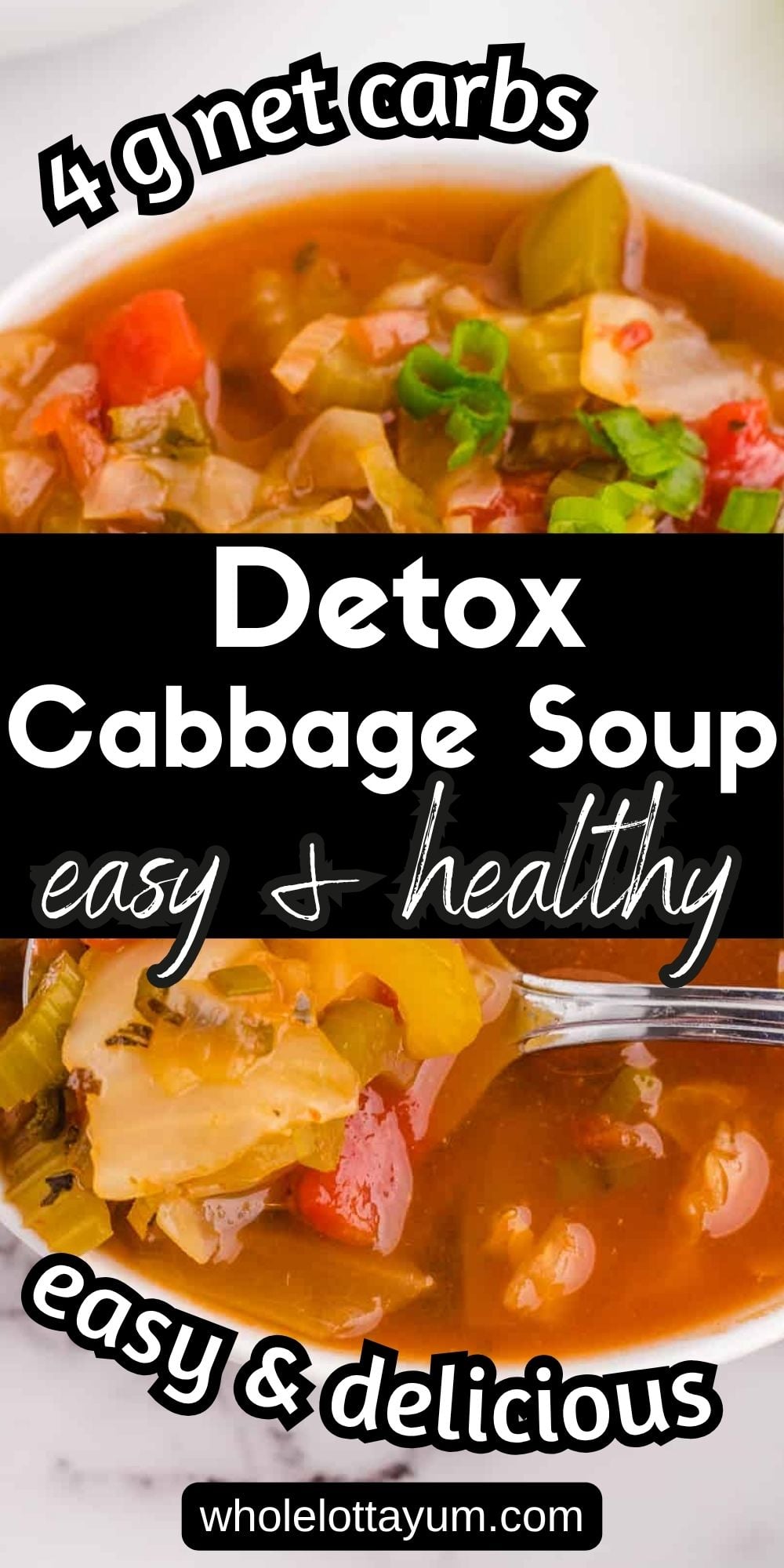 This healthy cabbage soup is a great way to jumpstart a weight loss program or simply to eat on a chilly day when you want a low carb soup that's light and refreshing. 57 calories per bowl and just 4 net carbs!