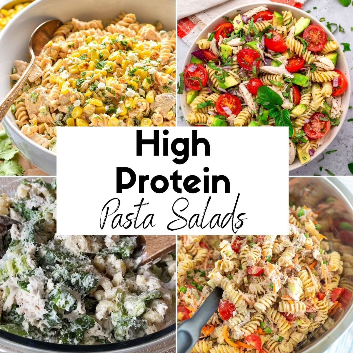 High protein pasta made from chickpeas, lentils, or edamame is a great option. These pastas contain significantly more protein than traditional pasta and work well in cold pasta salad recipes.