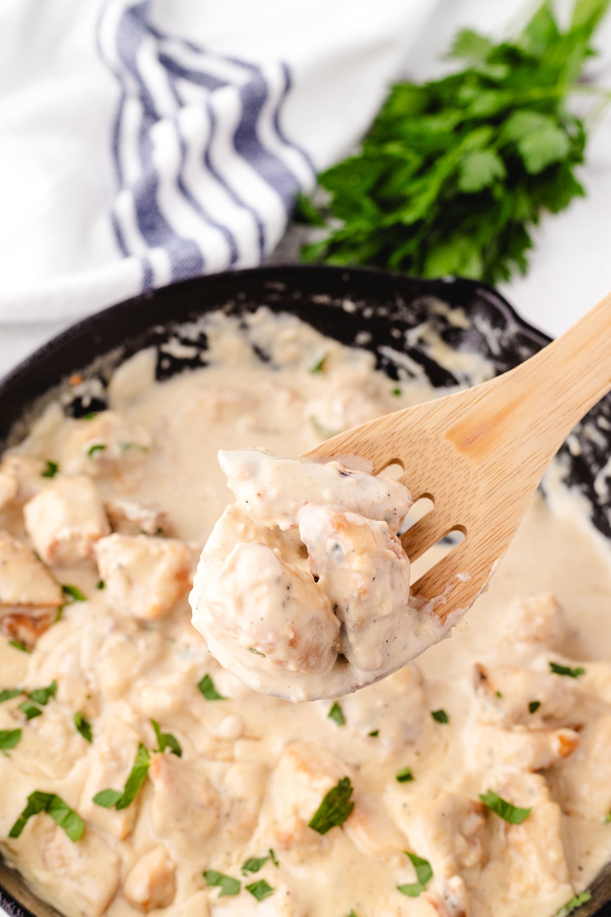 We took our 40 year old family favorite alfredo sauce recipe with heavy whipping cream and adjusted it a bit to make sure it was low in carbs for our Whole Lotta Yum readers. Everyone always tells us it's the best alfredo!