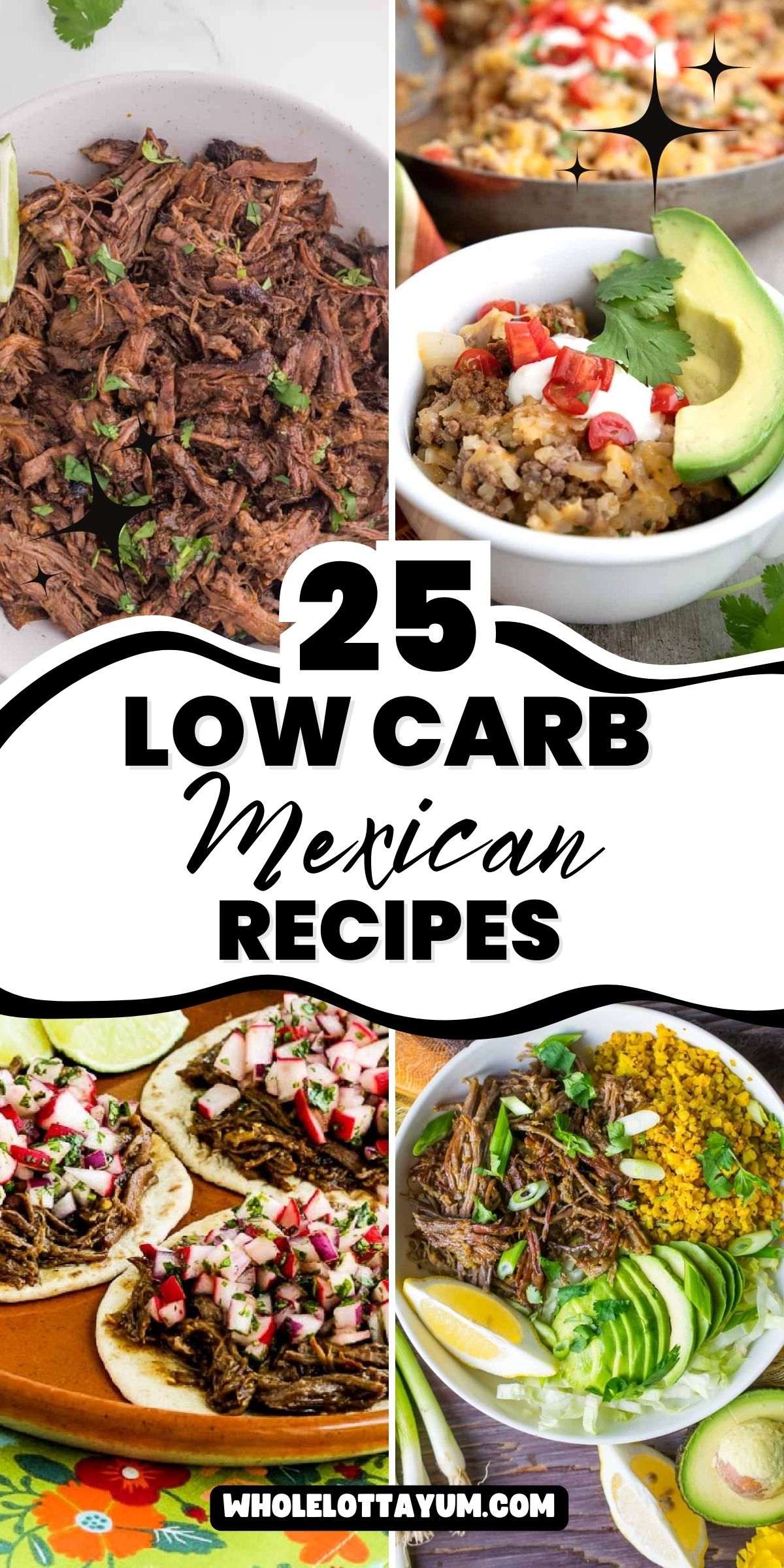 This roundup includes a mix of my own tried-and-true recipes from Whole Lotta Yum, plus popular low carb Mexican recipes from other food bloggers that readers consistently rate highly.