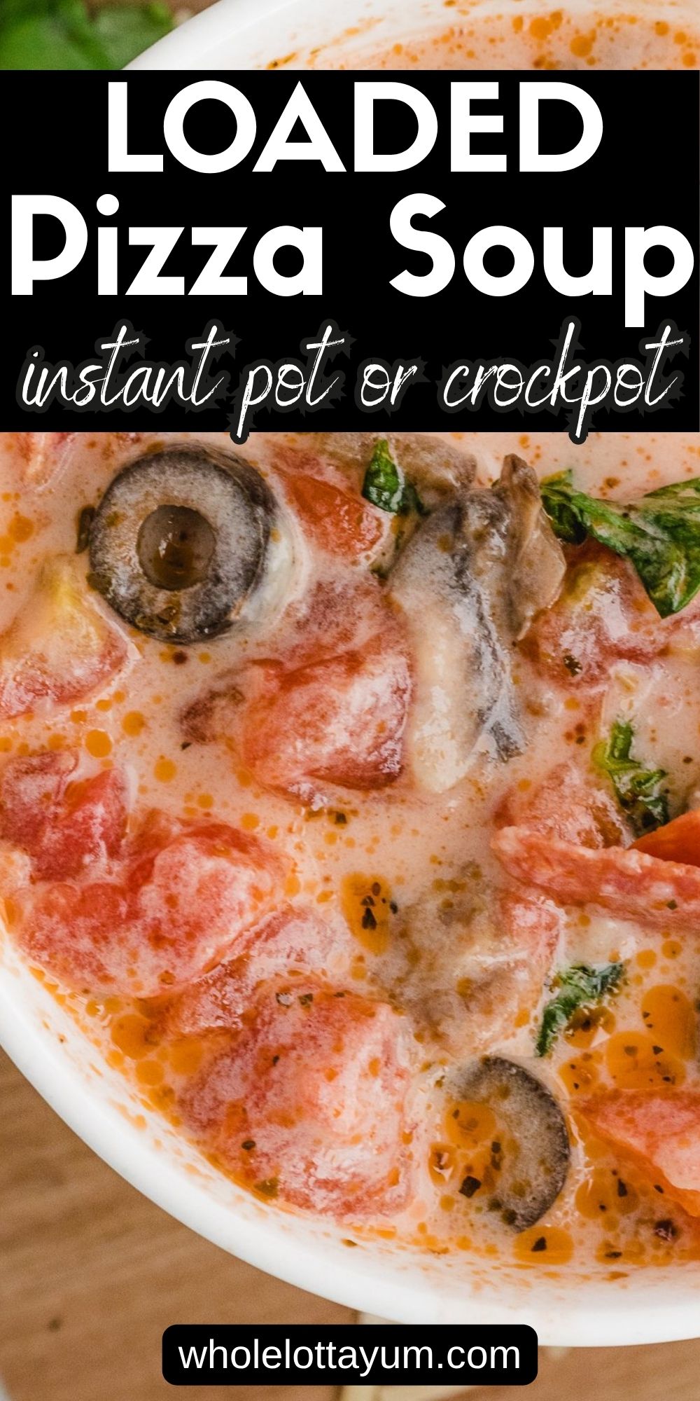 This easy, creamy keto pizza soup recipe makes for a healthier pizza option that will quickly become a family favorite. Loaded with pepperoni, Italian sausage, and lots of veggies, we show you how to make it in a Crock Pot or Instant Pot.