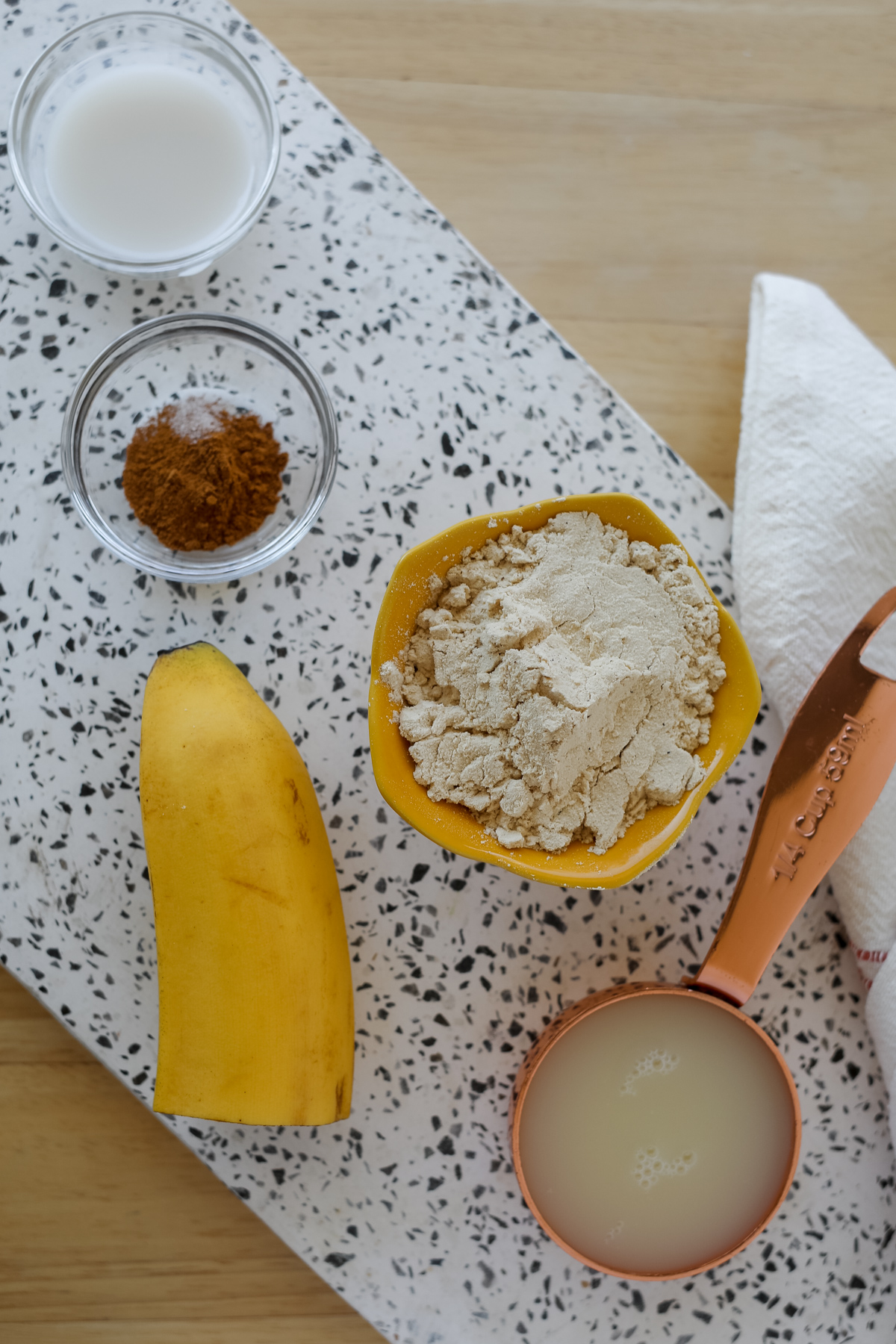 • Banana or pumpkin puree: The base that adds natural sweetness and helps bind the pancake without flour.