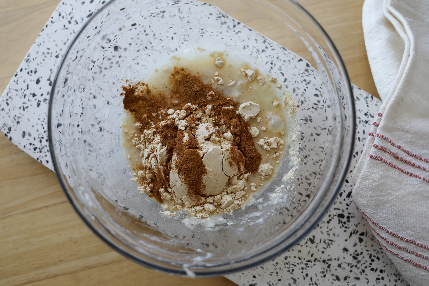- Add in the egg whites, protein powder, cinnamon, pinch of salt, and optional sweetener.