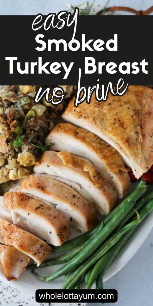 Learn to make a smoked turkey breast bone-in no brine recipe with tons of flavor that's both quick and easy. Instead of the slow process of brining, just make our 5-minute super flavorful turkey rub, spread it on the turkey, and smoke. It's a WHOLE LOTTA YUM!