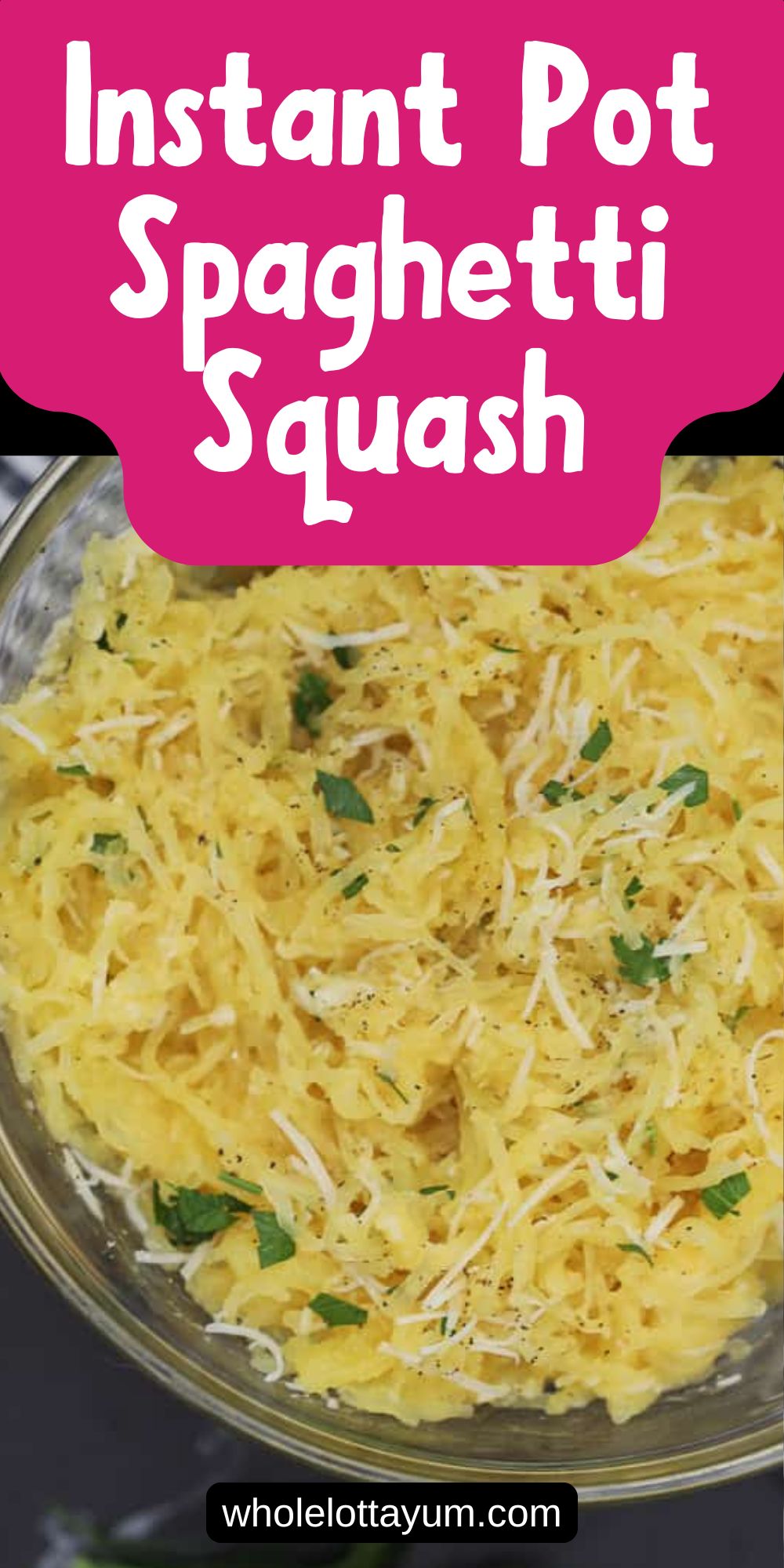 Easy 7 minute Instant Pot spaghetti squash is so simple, you'll never make it any other way! Add our garlic parmesan sauce for a delicious and tasty low carb side dish.