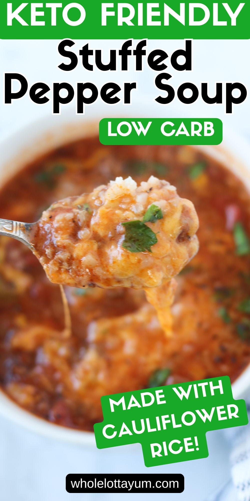 This easy keto stuffed pepper soup is one of my favorite cozy, low carb meals to make in the slow cooker. It's everything you love about classic stuffed peppers - hearty ground beef, sweet bell peppers, and savory tomato broth - made simple and with cauliflower rice.