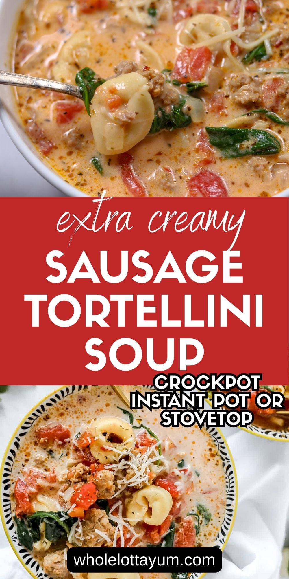 We show you how to make our easy sausage tortellini soup in a Crock Pot, an Instant Pot, or on the stovetop too. It's a Whole Lotta Yum!